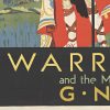 This rare 1931 stone lithograph promotes Warrenpoint and the Mourne Mountains for the Great Northern Railway (GNRI). Printed by J.B. Stephens, the poster features an arresting Art Deco warrior figure overlooking a sweeping coastal landscape — a dramatic, historic image that plays to local legend and landscape. The bold color palette, crisp typographic banding, and large-scale figure make this an outstanding example of early 20th-century Irish railway poster art.