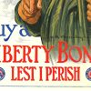 Original vintage poster: YOU Buy a Liberty Bond Lest I Perish. Fine condition, linen-backed World War 1 bonds poster. Archival linen backed in very fine condition; ready to frame. Artist: C. R. Macauley created this image of Lady Liberty as part of the first Liberty Loan issues during World War I.