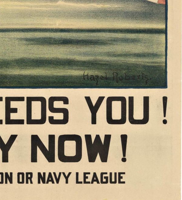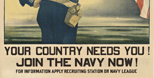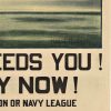 Original WW1 poster: “Your Country Needs You! Join the Navy Now!”