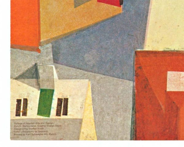 This striking Zurich, Switzerland vintage travel poster, created by renowned artist Steffen Wolff in 1978, presents a beautifully stylized view of the historic Swiss city. Featuring a modernist geometric perspective of rooftops, winding streets, and the quiet charm of Zurich’s architecture, the artwork captures the character and elegance of one of Europe’s most beloved cultural destinations.